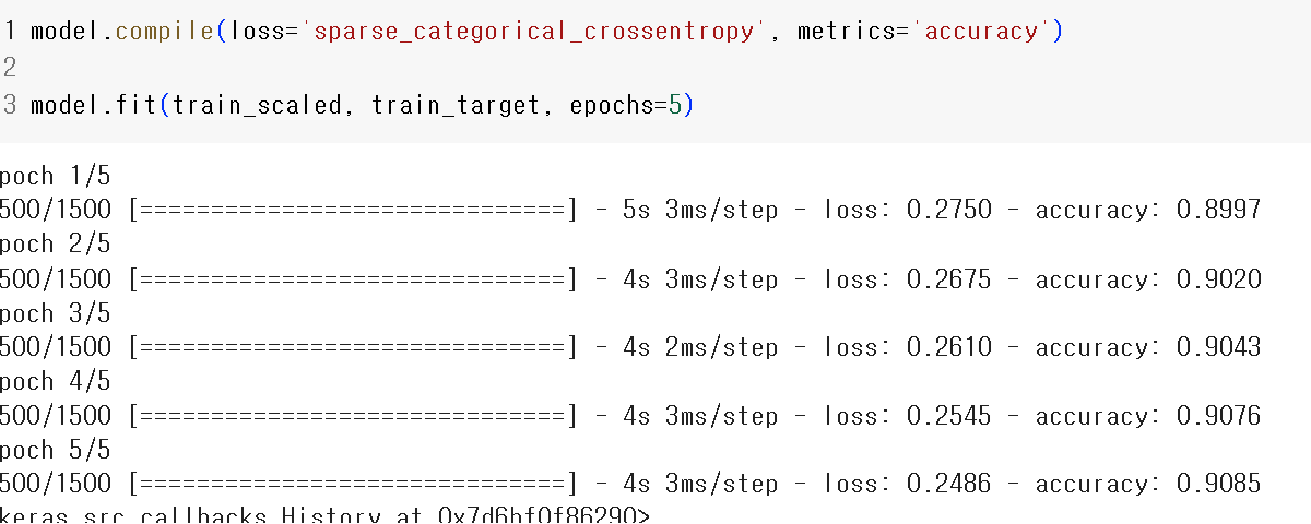 4. 정수 레이블을 타깃으로 가지는 다중 분류 문제일 때 케라스 모델의 compile() 메소드에 지정할 손실 함수로 적절한 것은 무엇인가요?
